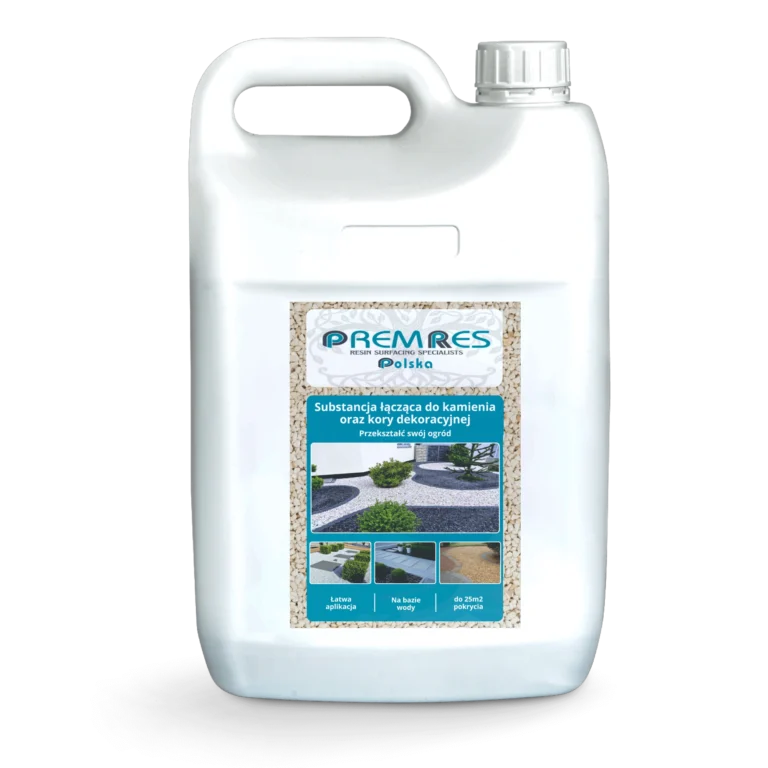 PremRes Substancja łącząca do kamienia oraz kory dekoracyjnej  to wodny żywiczny środek wiążący, zaprojektowany do nakładania na luźne kruszywo (kamienie, żwir, ściółkę itp.), aby zapobiec niepożądanemu rozsypywaniu i przesuwaniu kamieni. Substancja łącząca do kamienia oraz kory dekoracyjnej stała się popularna dzięki łatwości użycia w porównaniu z alternatywnymi systemami wiążącymi żywice. Kamienie związane substancją łączącą do kamienia oraz kory dekoracyjnej zachowują naturalny wygląd, ale są mocno utrzymywane na miejscu po wyschnięciu środka wiążącego.